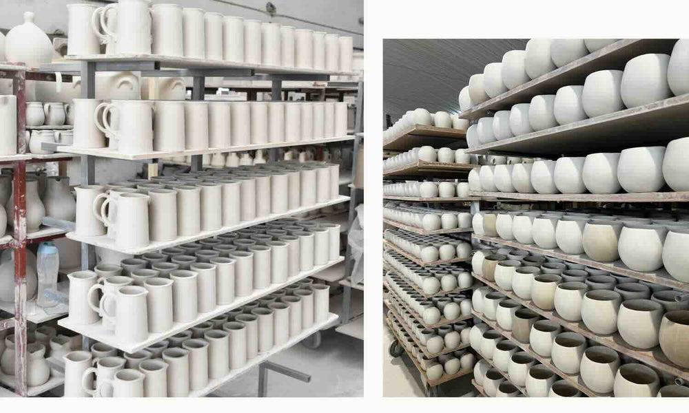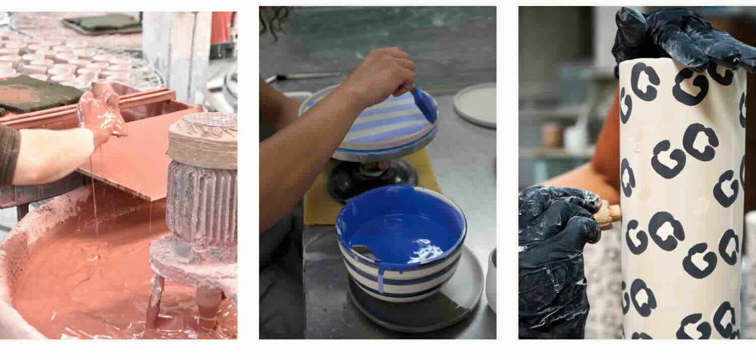 Chaque pièce prend forme dans les mains des céramistes, selon différentes techniques de façonnage : dans un moule en plâtre, à la presse ou au tour de potier.