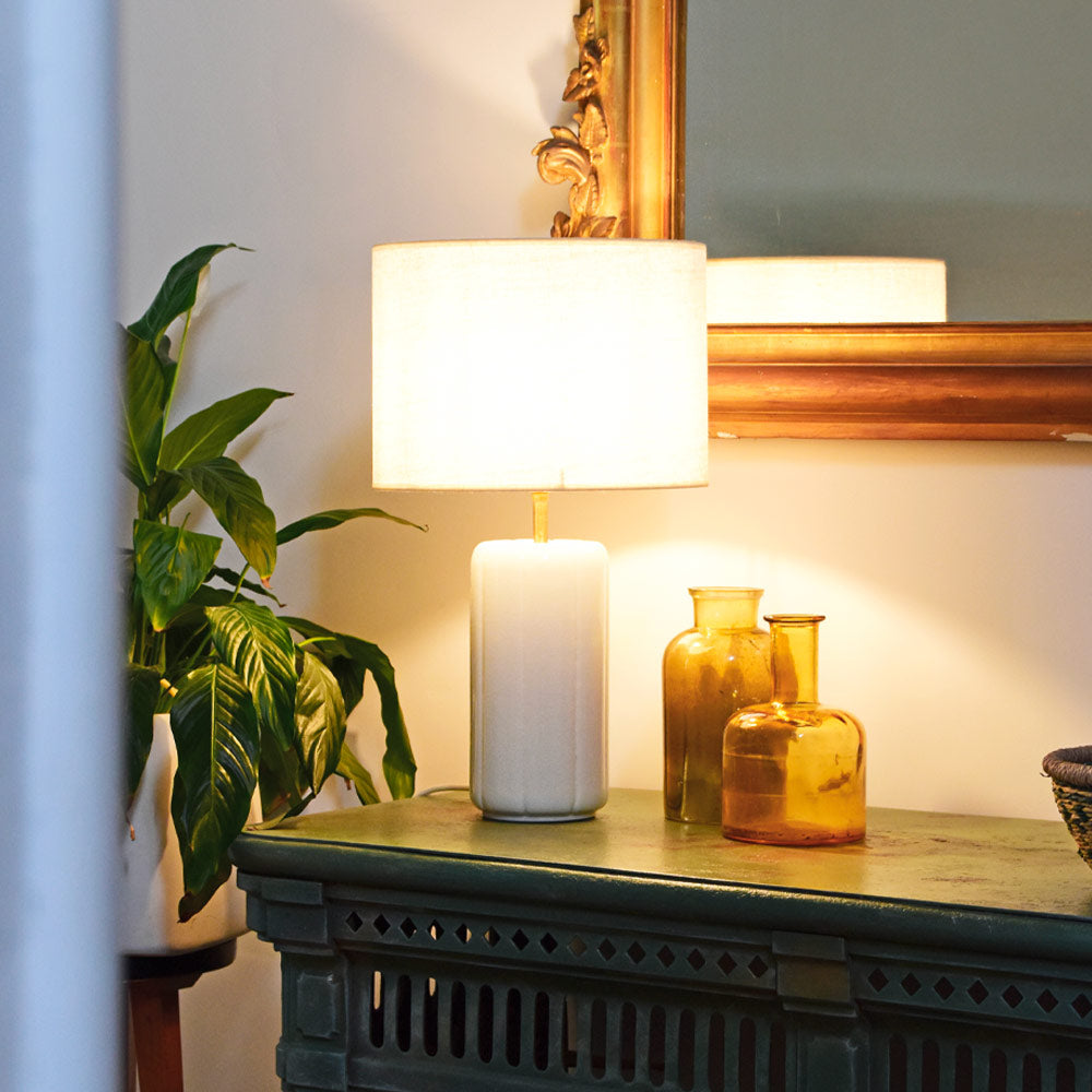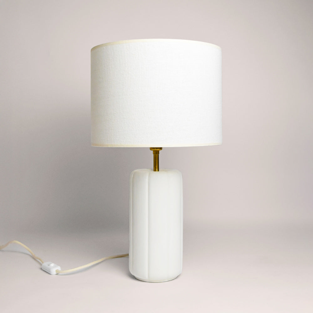 Deux pieds en céramique, deux abats-jours à combiner selon vos envies, des lignes simples, des matières vraies, une douceur qui éclaire autrement.