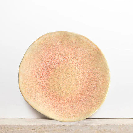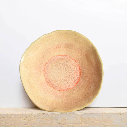 Des assiettes comme des fragments d’été, patinées par la main, baignées de couleurs tendres et solaires. Chaque pièce évoque un moment suspendu : un déjeuner à l’ombre d’un parasol, un soir de juillet où la lumière se couche sur le sable encore chaud.
