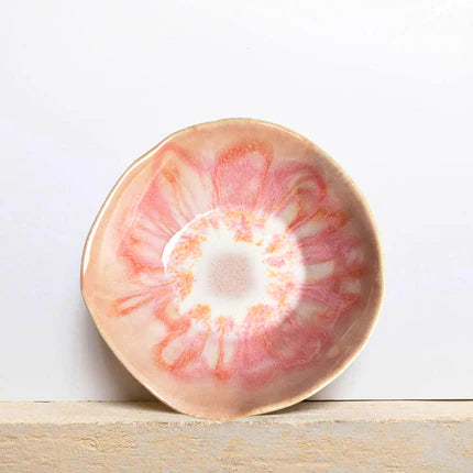 Émail : Cet émail réactif évoque les teintes délicates des anémones de mer, entre beige poudré et rose minéral, rehaussées